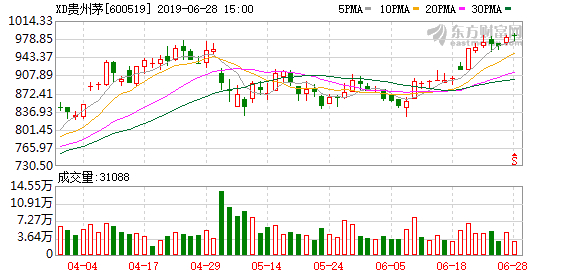 6月27日上午,贵州茅台股价突破千元大关,盘中最高达到1001元/股。随后股价回落,27日报收981.81元/股,截至28日周五收盘,未能回涨至千元以上。