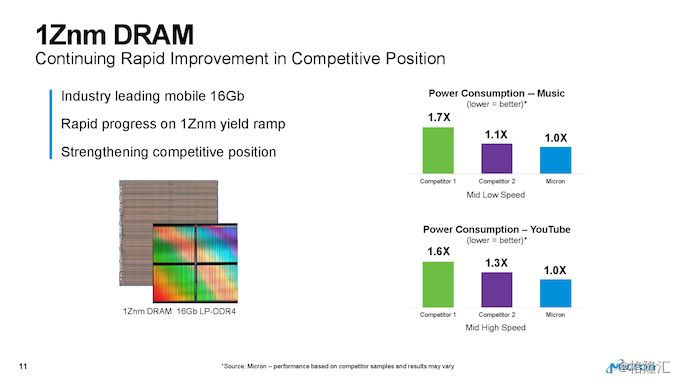 该公司的下一代1Z nm目前已获得美光客户的认可(他们正在测试使用该工艺生产的各种芯片),预计将在近期宣布,并且有望在自9月开始的美光的2020财年实现增长。该技术将用于生产16 Gb LPDDR5存储器件以及DDR5存储器件(根据TechInsights)。