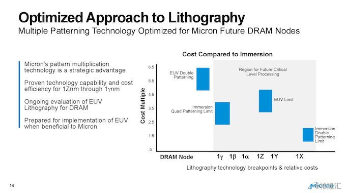 按照目前每12个月一个新节点的速度,如果一切按计划进行,Micron的多 patterning.技术路线图将至少扩展到2023年(我在这里猜测!)请记住,每一项新的工艺技术都至少要使用三到四年,可以有把握地说,美光计划在未来许多年里使用多模式DUV技术。