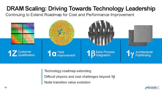 激进的路线图随着越来越难以扩展新的制造技术(无论是在工程方面还是在财务挑战方面),与所有DRAM制造商一样,美光将拥有多个10纳米级节点。除了今天使用的第一代和第二代10纳米级的工艺技术,鉴于现在面临不同的发展阶段,美光计划引入至少四个以上为10nm级的制造工艺:1Z,1 α,1 β和1 γ (希腊γ,不是y)。