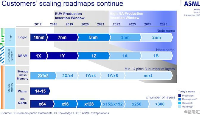 DRAM制造商采用EUVL工具很可能与逻辑生产商(台积电,三星代工(逻辑芯片的合约制造商,而不是DRAM制造商)的采用类似):最初的EUV设备将仅用于几层,随着工艺节点的增加,层数逐渐增加。ASML估计,对于DRAM,一个EUV层每月需要每100,000个晶圆启动1.5到2个EUV系统,因此,考虑到存储设备的容量,内存制造商将需要许多机器。