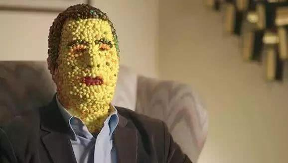 通常,人们习惯于将五颜六色的彩虹糖和童年联系起来,玛氏却不这么想。彩虹糖的广告常常是大开脑洞,比如把彩虹糖回炉重造,做出一盘彩虹脑浆;女孩儿的眉毛里长出了彩虹糖,她的老师一本正经地从她的眉毛中拔出彩虹糖吃掉;还玩过密集恐惧的梗,一个男人因为太热爱彩虹糖,从皮肤到头发都变成了密集排列的彩虹糖……