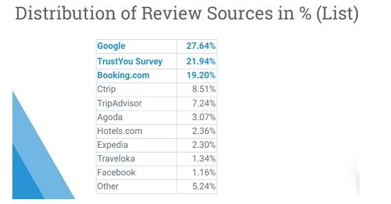 就亚太地区而言,Google、Booking.com和携程所贡献的酒店点评数量占比分别为27.6%、19.2%和8.5%。