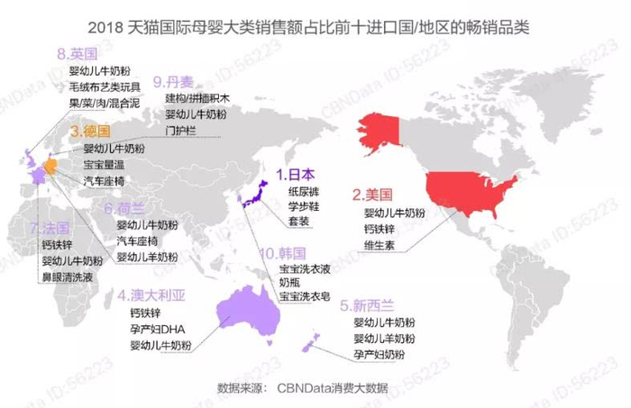 其实,在《2018跨境进口消费洞察报告》就曾提到,在天猫国际跨境平台上,美国、澳大利亚及法国是最受消费者青睐的婴幼儿营养品进口来源国。