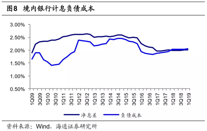 境内券商资金成本较高是制约券商加杠杆的一大因素。境内券商加杠杆的方式主要包括短期融资(短期融资券、拆借、卖出回购)及长期融资(公司债、次级债)。2014-2019H1期间,其中无抵押融资中的短融及长期借款的资金成本约3-5%,而以卖出回购为代表的有抵押融资的平均资金成本也在3%左右,远高于境内银行计息负债成本的1.5-2%。境内券商的发债成本也高于美国投行,高盛2018年抵押类融资平均资金成本为1.96%,长期发债平均资金成本为2.35%。较高的资金成本叠加愈发激烈的业务格局,使得券商近年来净息差波动较大,在市场环境一般的情况下,券商加杠杆的意愿并不强。