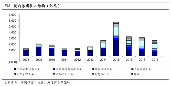 境内券商最好的时光或将过去。从ROE的绝对值来看,境内券商ROE的平均水平并没有过多落后发达市场。2014-2018年间境内券商平均ROE为9%,2013-2017年美国FINRA经纪商平均ROE亦为9%,日本2015-17年平均ROE8%。境内券商的ROE呈现时间上的明显分化。在牛市中券商的ROE高达17%(2015年),在其他时间ROE基本在6%左右,波动较大。而相比美国和日本市场,ROE基本在8%左右,波动较小。