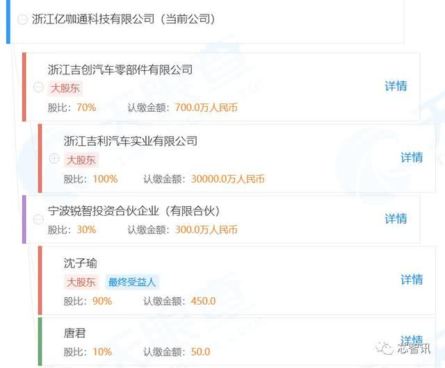 天眼查信息显示,亿咖通科技的实际控股股东为吉利汽车,占股70%