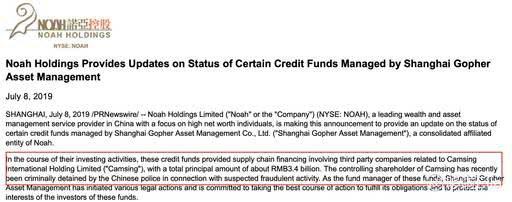 7月8日,也就是昨晚,诺亚放量大跌20%:并且发公告,承认旗下上海歌斐资产管理公司的信贷基金为承兴国际控股香港的第三方公司提供供应链融资,总金额为34亿元人民币,承兴实际控制人涉嫌欺诈,歌斐资产采取法律行动。