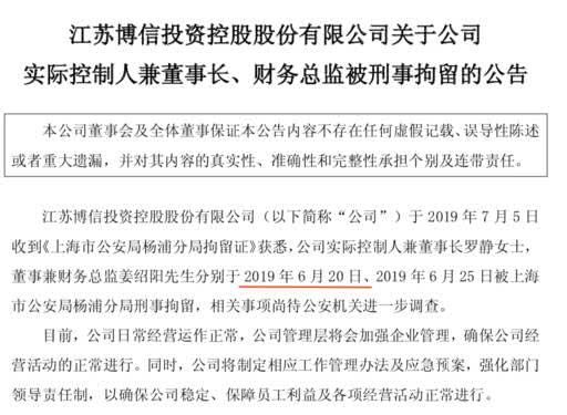 大家注意了!根据博信的披露,罗静是6月20日就被拘留了!!!到实际披露已经15天之久,而股价在7月5日之前早已异常下跌,可见消息人士已经先行撤退。