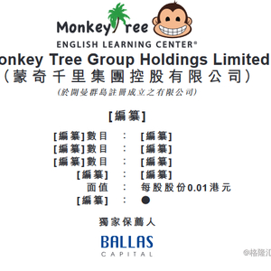 “Monkey Tree”蒙奇千里递表,拟重点拓展内地少儿英语培训市场