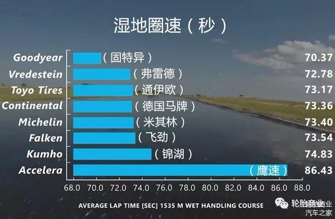 固特异在湿地表现让人眼前一亮,费雷德、通伊欧、德国马牌、米其林、飞劲、锦湖基本不相上下,鹰速轮胎表现较差。