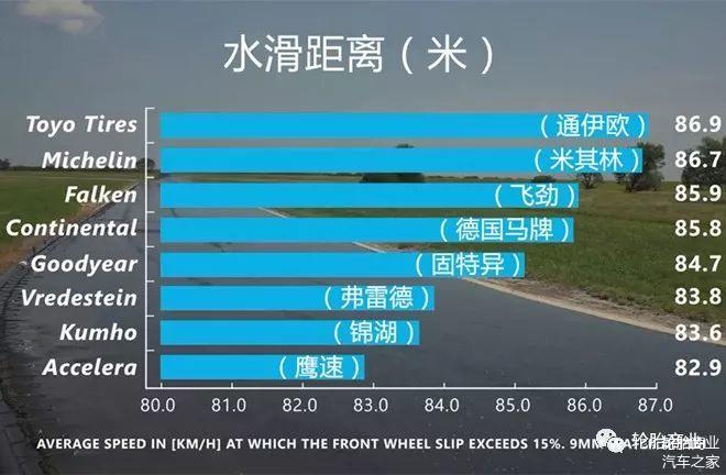 通伊欧水滑距离最长,其次是米其林,注重操控的飞劲和德国马牌排名第三第四。