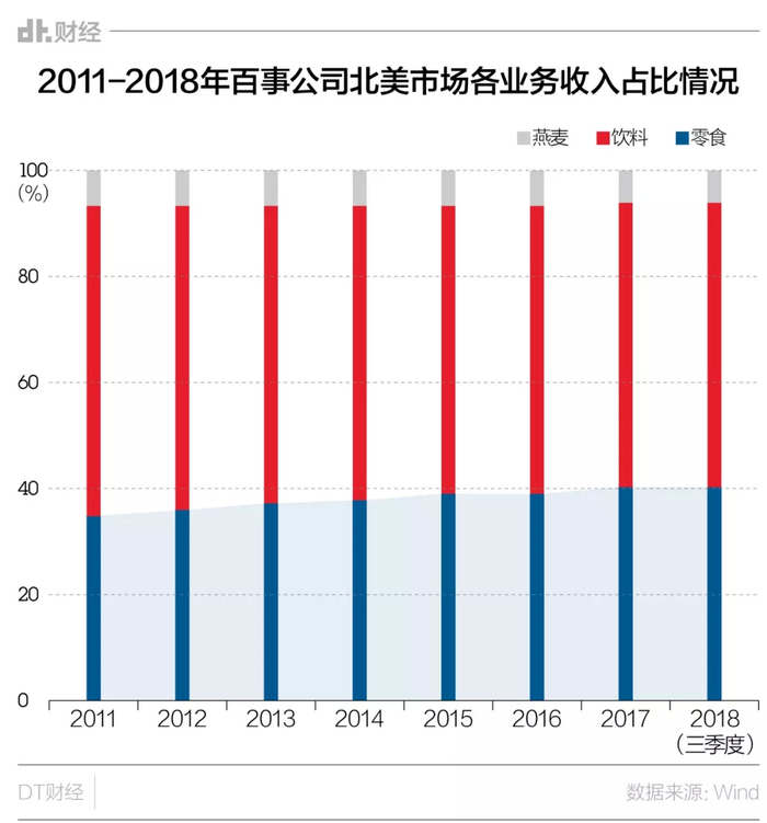 而且,DT君还注意到,在百事的收入中,有比较稳定的一部分是由燕麦贡献的,来自在2001年被收入麾下的桂格燕麦——这怎么看都有些像是对冲,跟杜蕾斯收购奶粉厂有异曲同工之妙。