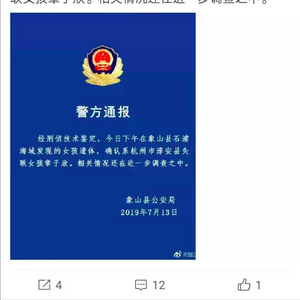 据网友截图显示,就在7月14日下午,警方找到疑似章子欣遗体后,发布了一条动态: