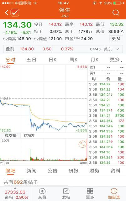 但是,彼时强生股价大跌后,富国银行、投资机构Susquehanna、Jefferies等均为强生辩护。