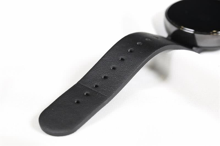 出厂预置了一条柔软的皮质表带,高端范儿十足,另外其还提供一条塑胶表带替换使用。