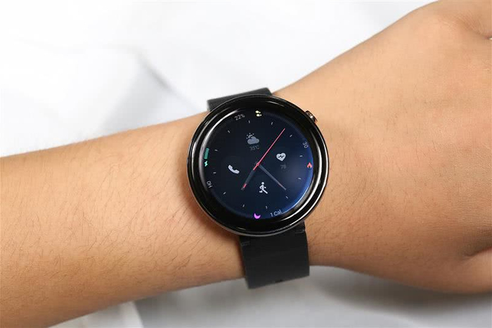 我们来将屏幕点亮,这拟真的效果逼近传统机械手表的表盘,主要归功于置身此处的1.39英寸AMOLED屏幕,具体来说,其分辨率达到了454×454,在如此小范围的显示区域之内堆砌如此之多的像素点,自然而然带来细腻的显示效果。