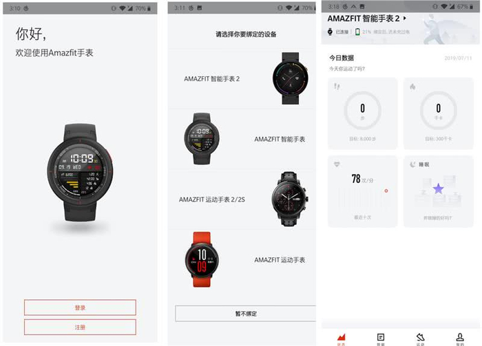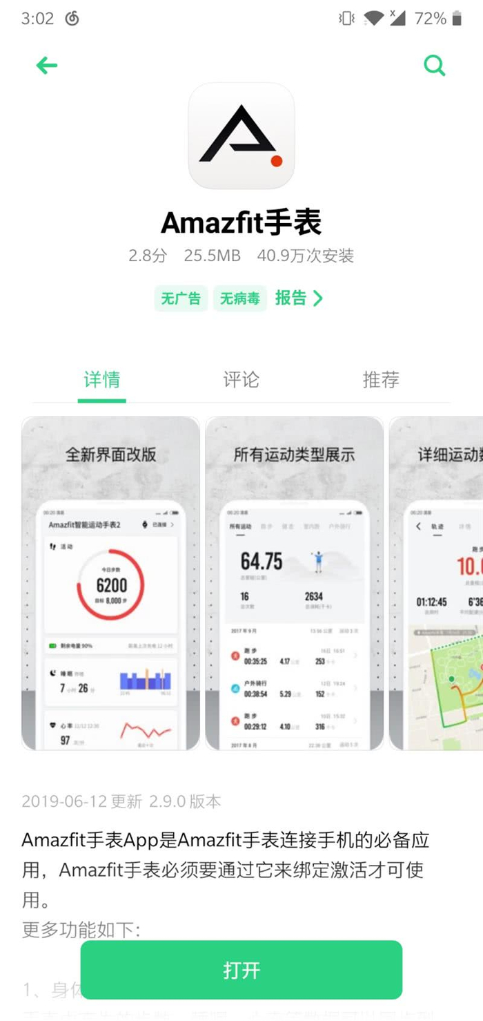 整个绑定流程相比较使用小米运动之时更为简洁,只需要在手机端下载AMAZFIT手表App,然后按照提示流程绑定激活即可。