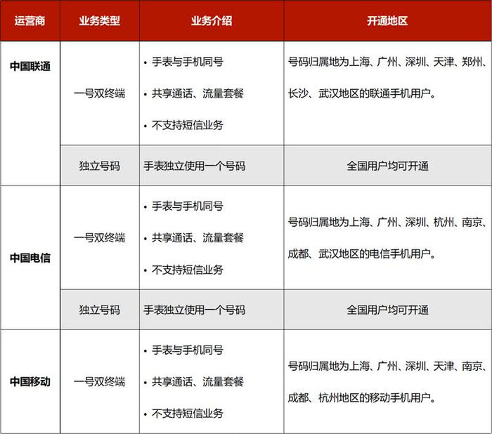 华米智能手表2目前已经支持联通与电信一号双终端和独立eSIM号码的业务,中国移动会稍后一点。关于“一号双终端”,这里简单介绍一下:有来电时,两个终端会同时收到,两个终端都可拨出电话,主设备和手表之间不能通话,手表暂不支持短信业务,其他业务支持情况各运营商之间各不相同。