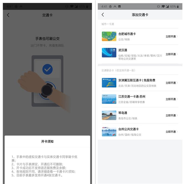 而华米智能手表2显然对这一实用功能格外在乎,其不仅拥有NFC功能,并为之适配了188个城市公交、地铁交通卡,华米智能手表2是业界支持公交卡数量最多的设备之一。并且在AMAZFIT手表App客户端可以为手表开通交通卡。