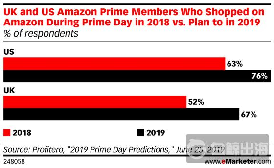 预计今年英国和美国亚马逊会员日购物人数较去年增长10%以上