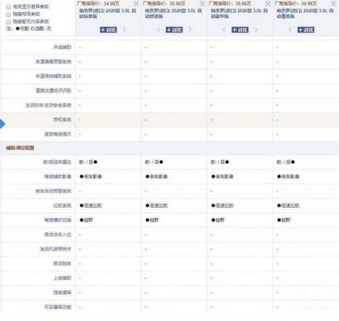 从上图可看出,帕杰罗不仅低配车型仅两个气囊外,并且像并线辅助、车道保持等主流主/被动安全配置都很少配有。并且在辅助操控配置方面,连上坡辅助和陡坡缓降也都没有配备,就更别奢求自动泊车和发动机启停等配置了。
