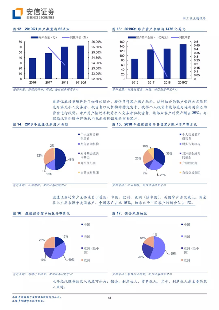 行业巨头盈透证券(IBKR.US)在全球125多个市场中心开展经纪/交易业务,截止至2019年3月31日,开户用户达62.3万,客户的账户资产余额达1476亿美元。主要有三大秘诀。,客户可以在31个国家的120多个市场中心进行交易,使用多达23种货币。通过一个IB环球账户,可以无缝地从电子市场进入股票、期权、期货、外汇、大宗商品、债券、基金和ETF市场。,连续18年被美国巴伦周刊评为低成本经纪商,为客户闲置账户资金提供利息。,盈透的平台为客户提供了高效体验,提供风险管理与最佳交易策略。