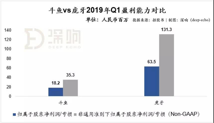在2016-2018年,斗鱼归属于股东的净亏损则分别为7.83亿、6.13亿、以及8.76亿元人民币,过去三年累计亏损22.72亿元人民币。然而,公司在上市前补充披露的2019年一季度财务数据,则显示2019年一季度公司实现营收14.89亿元人民币,相比较去年同期增长123.4%;净利润为1820万人民币,非通用准则下(Non-GAAP)归属于股东净利润3530万元人民币。