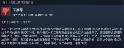 没有人会去给《魂斗罗》挑刺,但现时的玩家对传统操作设定的不满,似乎全都集火于《硬核机甲》身上。葡萄君翻了二百多篇负面评价,大部分Steam用户,因为无法理解该作的单摇杆操作逻辑,选择了倒竖红拇指。部分尤为抗拒的玩家,更是直接将单摇杆操作视为‘反人类’‘异端’及‘病态’。