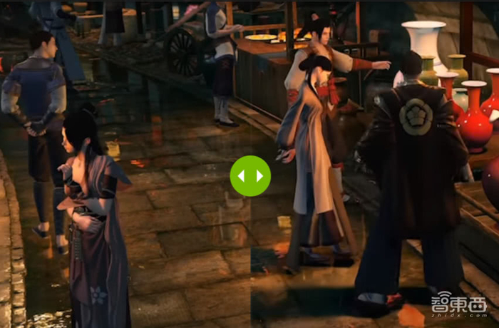 绿色箭头右侧为英伟达实时光线追踪技术效果,镜像画面细腻
