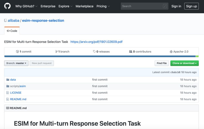 2019 年7月,阿里开源人机对话模型ESIM。ESIM 是一个解决多轮对话回复问题的原创模型,通过给对话机器人装上实时搜索并理解人类真实意图的“雷达”系统,实现对对话历史的实时检索,自动去除多余信息的干扰,给出人类期待的回复。