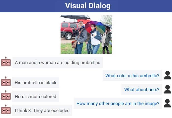 视觉对话中,AI可以从容应对人类提问,左为AI,右为人类。