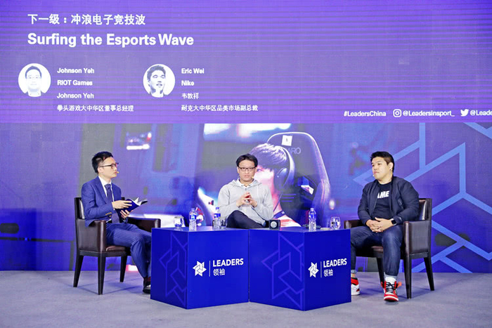 在“下一级:冲浪电子竞技波”的圆桌讨论环节,耐克大中华区品类市场副总裁韦敦祥(Eric Wei)和拳头游戏大中华区董事总经理Johnson Yeh分别从传统体育行业公司和电竞品牌的角度解析了时下的电竞发展局势。双方于今年2月达成了时长4年的赞助合约。