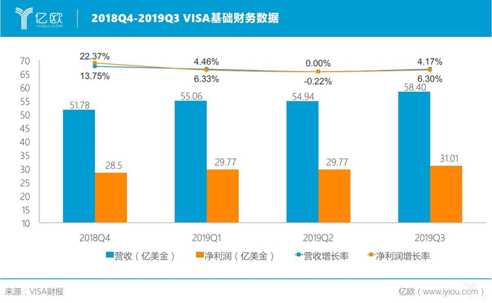 VISA发布2019财年Q3财报:营收58.4亿美元,净利润31亿美元