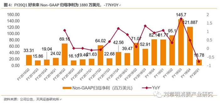 归母净利润同比减少89.07%至亏损730万美元;Non-GAAP归母净利润同比减少77%至1880万美元。
