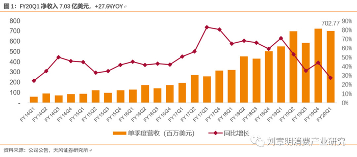 据估计,2020财年第二季度的总收入预计在8.957亿美元至9.167亿美元之间,同比增长28%至31%。考虑人民币兑美元汇率潜在变化的影响,预计2020财年第二季度的收入增幅将在32%至35%之间。