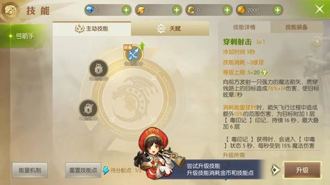 角色技能可以通过技能点和金币进行升级,30级之后还可以升级天赋,提升生命值、攻击力和属性等。35级前玩家可以免费重置技能点,所以在35级前完全不用担心加错点,多多尝试不是什么坏事。
