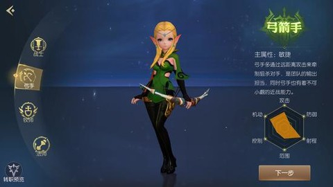 玩家可以从战士、弓箭手、牧师、法师中选择一种职业开始游戏。每个初始职业可以在2个进阶职业中选择一种职业,比如弓箭手可以转职为箭神或是游侠。箭神擅长单体输出、拥有最远的射程;游侠不仅擅长远程输出,近战能力也不逊色于其他近战职业。