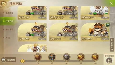 副本以外,游戏还有着多种日常活动,除了可以获得不同奖励的各种日常任务,还有着每周限时的活动,目前有首领猎杀、公会积分赛、趣味答题三种,他们会在每周的不同时间段出线,具体的时间可以在周历中查看。