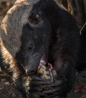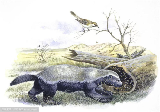 除了依靠自身机智获取食物外,平头哥还会与其他动物共同协作捕食。蜜獾因喜食蜜蜂幼虫而得名,但蜜蜂窝往往筑在比较高的位置,蜜獾不容易找到。为了享受美食,蜜獾便会与一种叫做黑喉响密鴷的鸟合作。