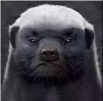 由于头部平坦,背上还长着一层白色毛发,像极了留寸头故意染白的江湖大哥,因此人们将蜜獾成为“平头哥”。从体型上看,蜜獾体型与一般獾的体型相差无几,顶天了身长一米;脑袋宽,鼻子短,眼睛小,再加上小短腿,安静的时候甚至还有种蠢萌感。