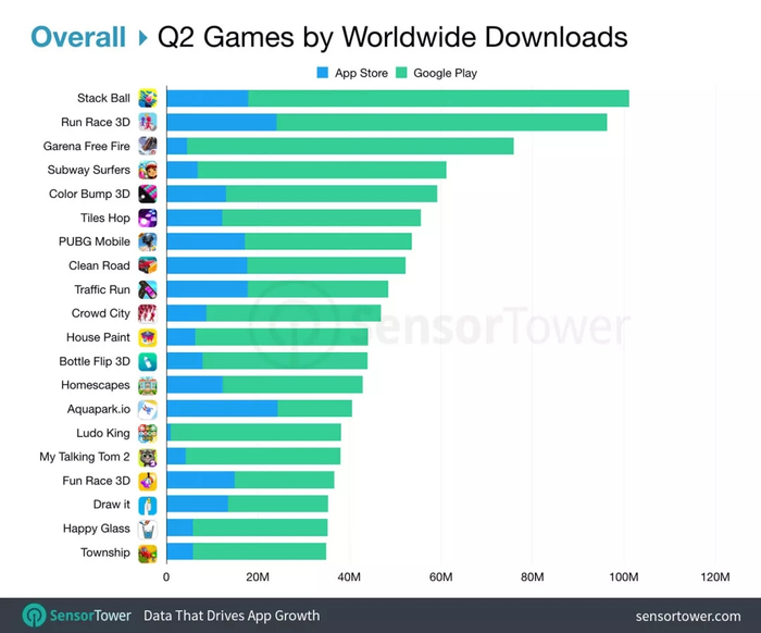 近日,市场研究机构 SensorTower 发布了 2019 年 Q2 全球手游下载榜。根据榜单信息,Azur Interactive 旗下的超休闲游戏《Stack Ball》吸量惊人,总下载量达到 1.01 亿次,一举摘得 Q2 综合手游下载桂冠。