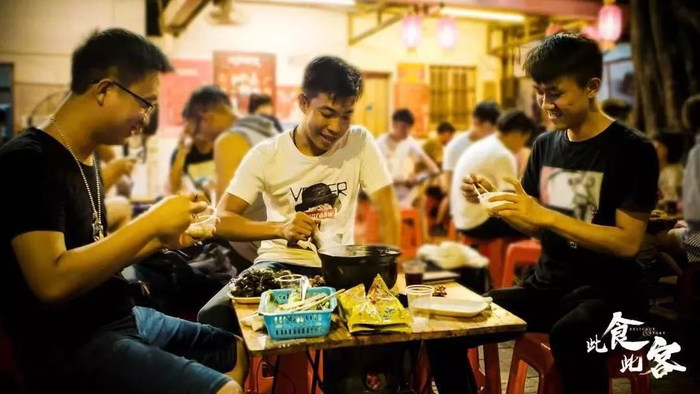 以“夜食烟火,情味人间”为主题的《此食此客》,分别以七个城市的夜晚为背景,呈现最地道的夜宵、最平凡的食客、最真实的情绪、最沉浸的聆听。其中,“第一夜”用镜头记录了广州大排档中形形色色的食客群像。不论是回忆起曾经理想而唏嘘不已的“饰演狗”的青年话剧演员,还是与分散多年的乐队成员久别重逢的90后少年,亦或是“广漂”夫妻的相濡以沫……这些看似平凡的人物,却有着属于他们不平凡的故事。生活路途中的无奈和欣喜,奋斗过程中的磨砺与收获,被影片自然而细腻地娓娓道来,引人共鸣的同时,增添了一丝人生思考的味道。