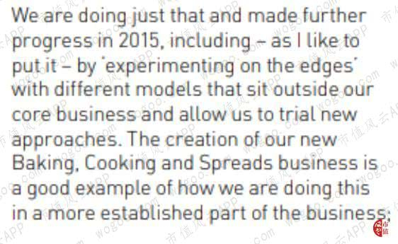 2015年,公司CEO Paul Polman在财报中表示,Spreads业务是公司大胆创新的标杆业务,是在已经成功的核心商业领域之外进行的有益探索。