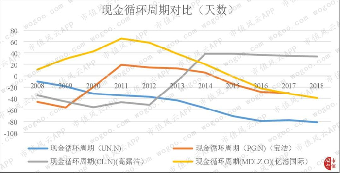 从近几年来看,联合利华渐入佳境,现金循环周期均低于同行其他三家公司,这也体现出了公司强大的运营能力。