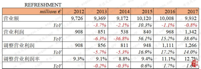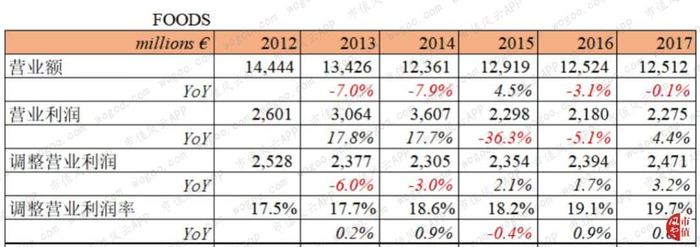 如果追溯更长时间,其实联合利华在过去6年,无论是食品的业务还是茶点的收入表现均不乐观。以2012年为基数,食品业务收入CAGR为-3%,营业利润也是同步负增长;而茶点业务收入则为0增长,虽然营业利润CAGR达到8%。