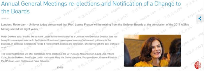 在这之后,联合利华开始探索对自身组织构架进行调整。2017年3月,联合利华发布新闻稿,通知年度股东大会重新选举和董事会变更。