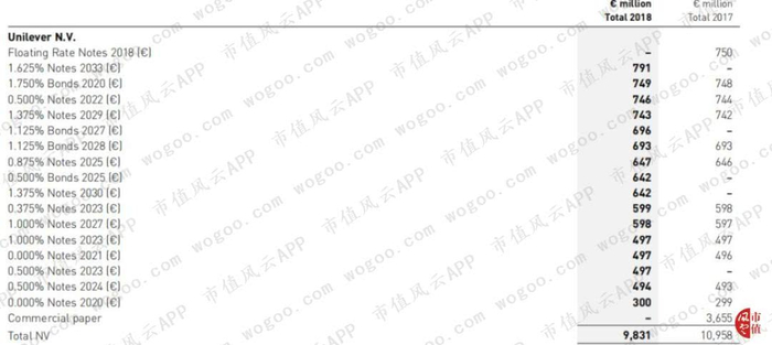 我们来一窥联合利华这两年的发债成本,利率简直低到令人发指!以2018年发行的票面金额7.9亿欧元、2033年到期的公司为例,发行利率仅为1.625%,利率低于1%的债券更是不胜枚举。