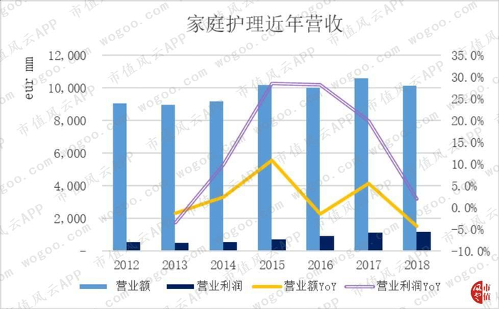 家庭护理业务在2018年的营业收入为101亿欧元,同比下滑4.2%。营业利润12亿欧元,营业利润率1.9%,经调整后也仅为2.1%。