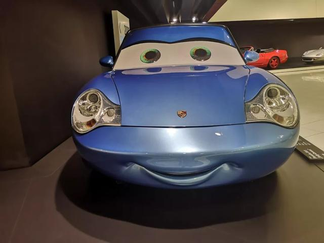 下面再分享一个独特的911——萨利(Sally)。它是电影《汽车总动员》的女主角,一辆基于996打造的角色。虽然是动画角色,但展示车做得挺认真,不像很多厂家拿一个油泥模型刷上漆糊弄了事。萨利的头灯、尾灯、车门、车轮、刹车盘等都是真家伙,有没有发动机我不清楚,但看上去像是能开动起来的样子。